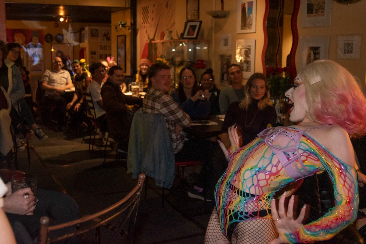 Cabaret Solidarite is a series of fund raising shows for a variety of causes. They feature local drag and burlesque artists.