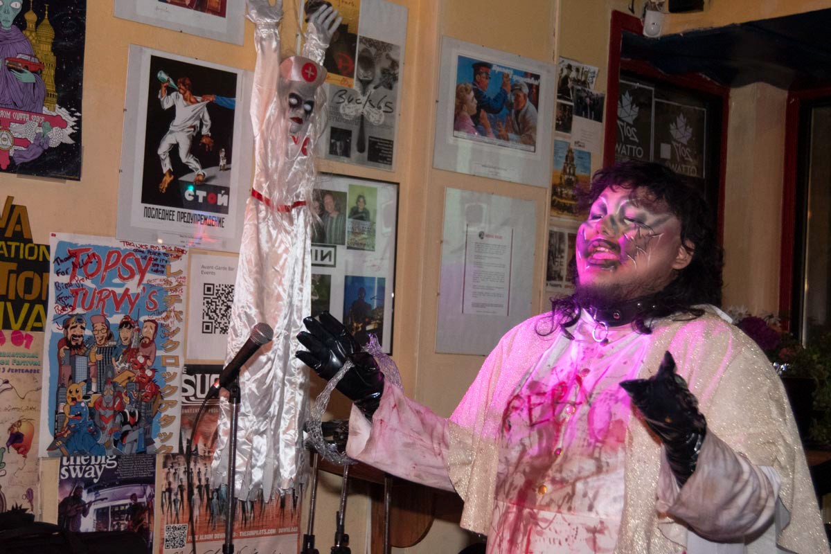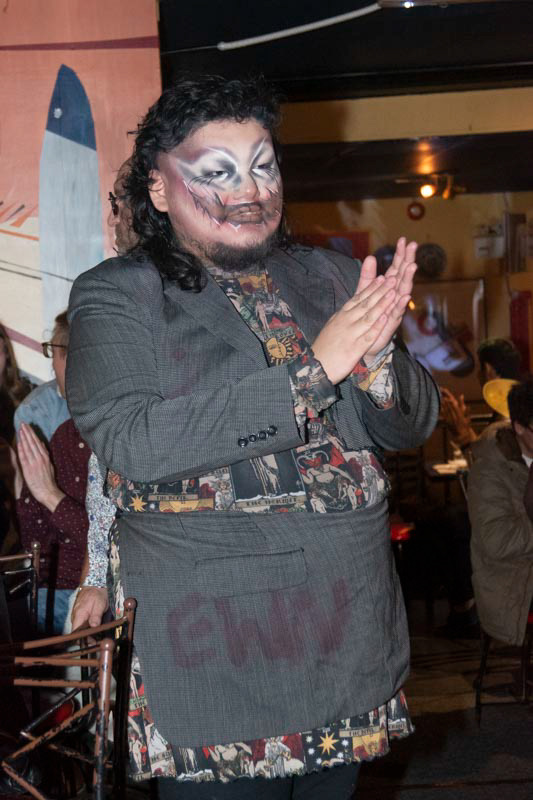 Sapphus, the host at the door well (or "Door Daddy", to use the same title used on the night of the show) represented the theme of the night, "Day of the Dead"