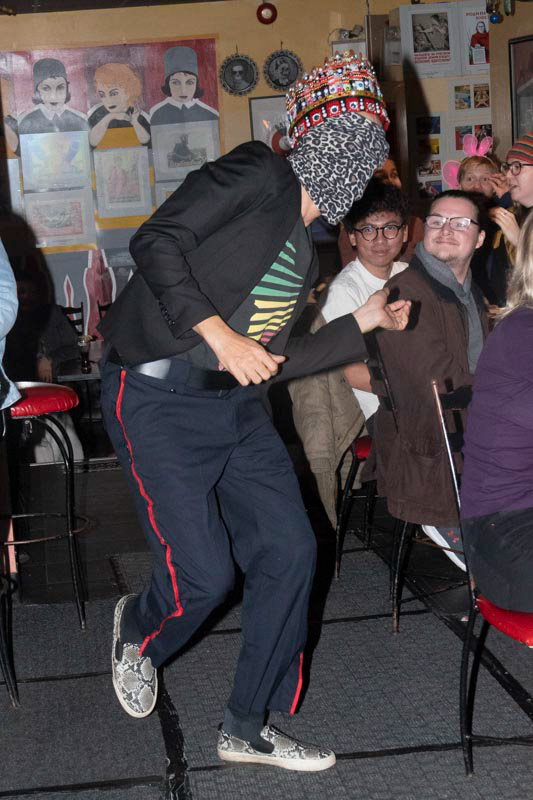 Erwin, a non-binary, Mx Drag, performer offered dance numbers