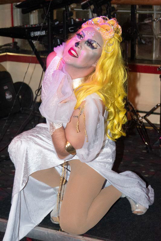 Mx Drag performer Honey Jack, getting ready to start her performance and waiting for the music to begin.