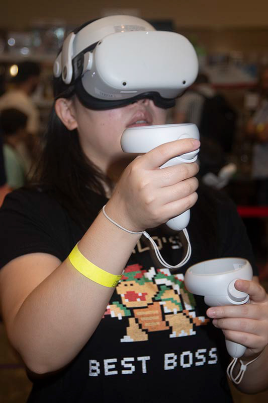 An attendee tries out the virtual reality experience.