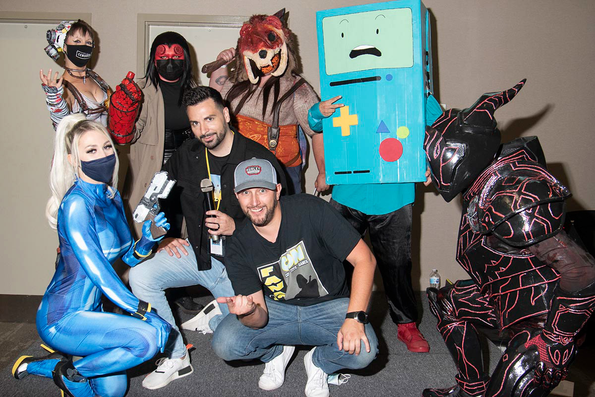 The 2021 costume contest winners, along with the judges, host and organiser of Fanaticcon
