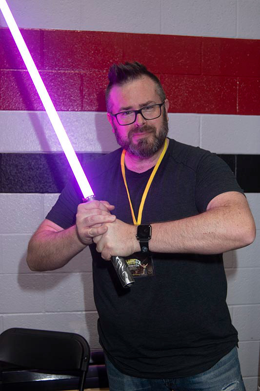 Anthony from Spade Sabres shows off one of his lightsabres.