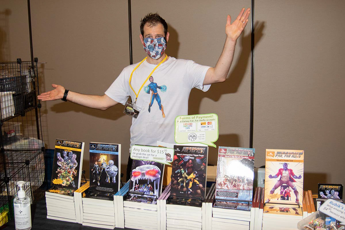 One of the vendors at the 2021 show displays his books for sale.